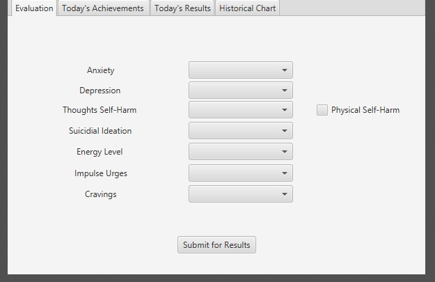 The application is a CRUD app (Create, Read, Update, and Delete) like the Java Swing and JavaFX apps, as stated in part 1 of the mental health blog post. The user must create several data points that the therapist can translate into warning signs or positives. Then, the therapist could share the information extracted from the various data points with the patient.